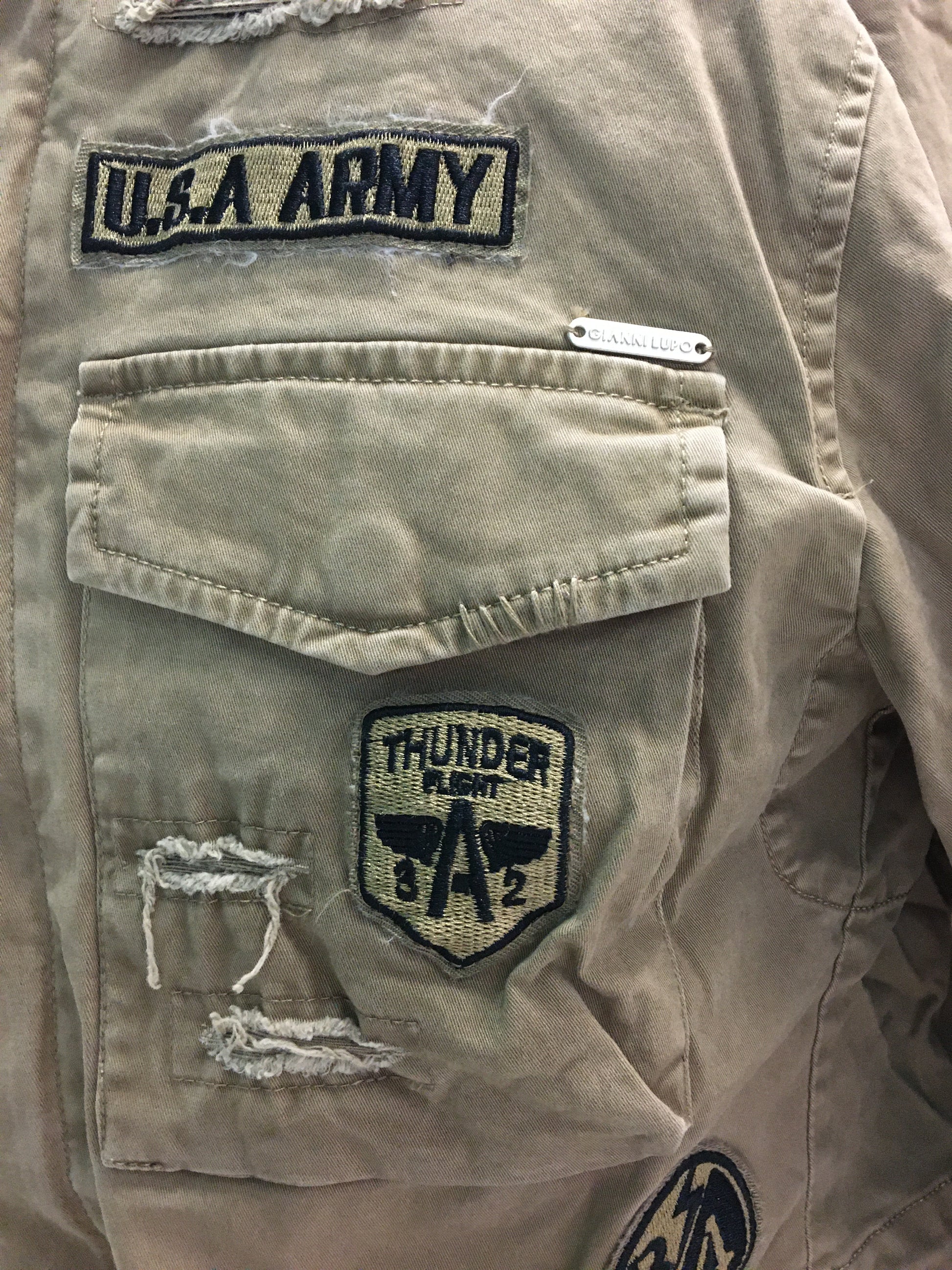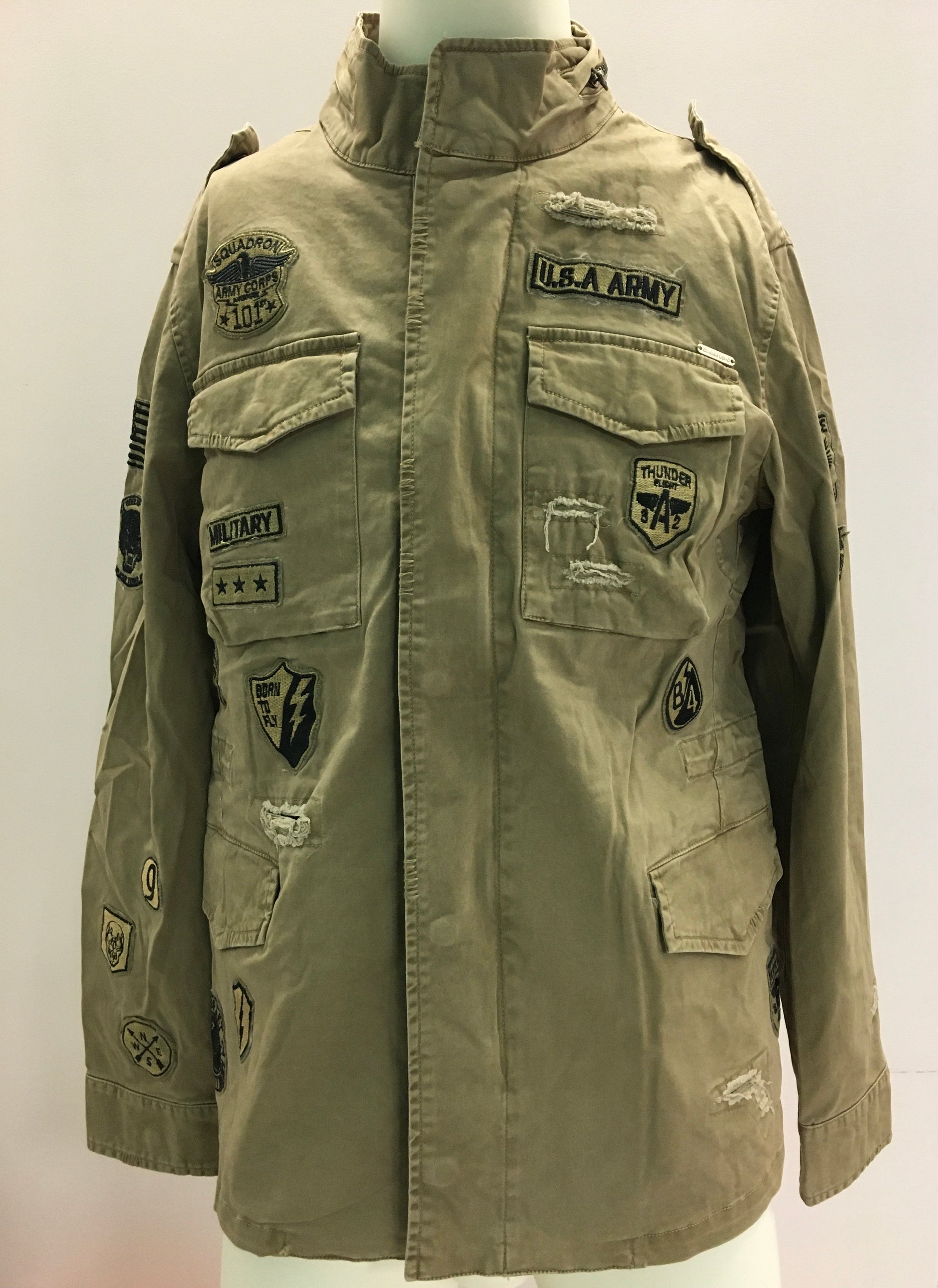 Giacca field con patch Military. Color cammello. Vita regolabile